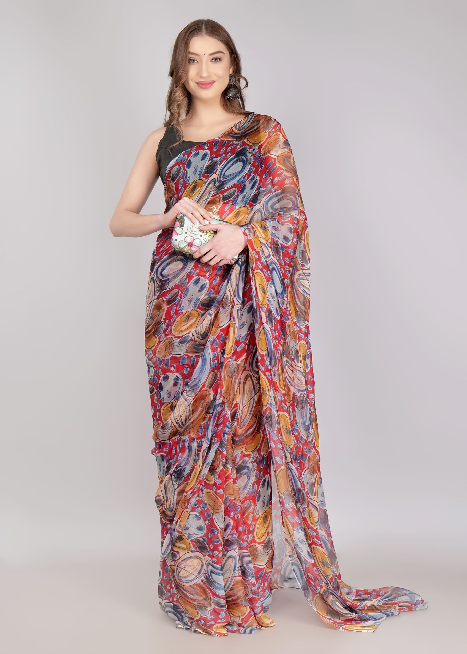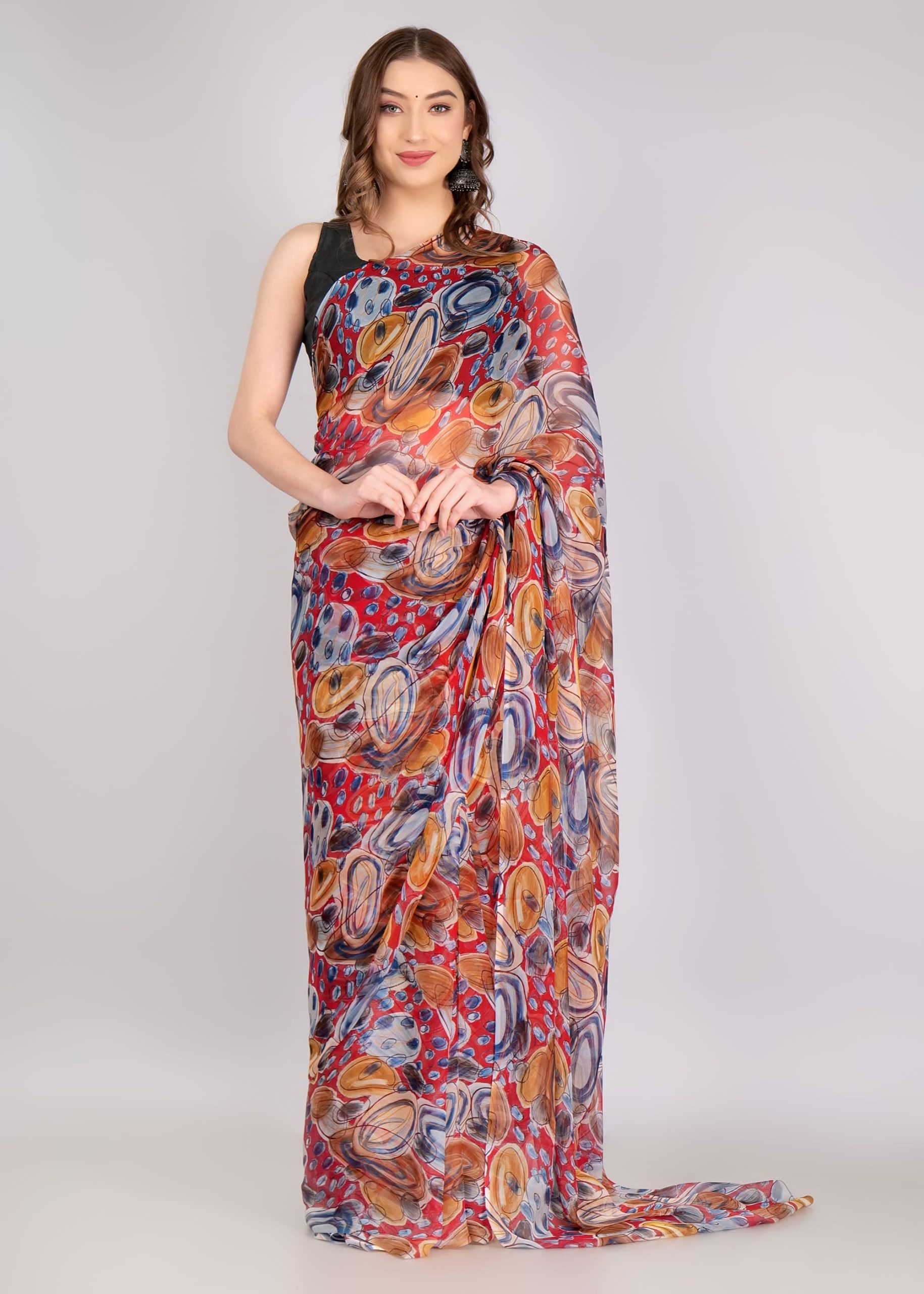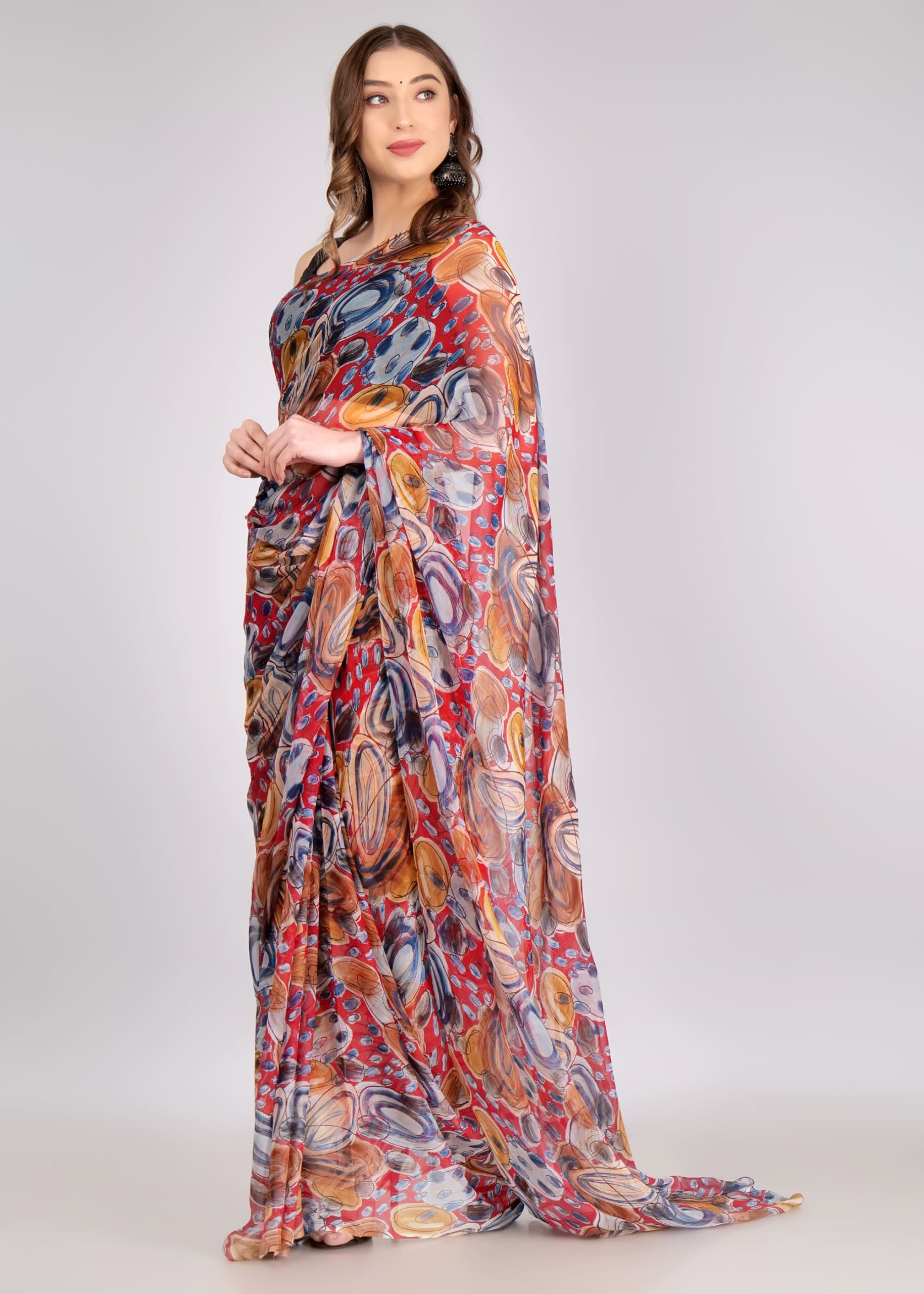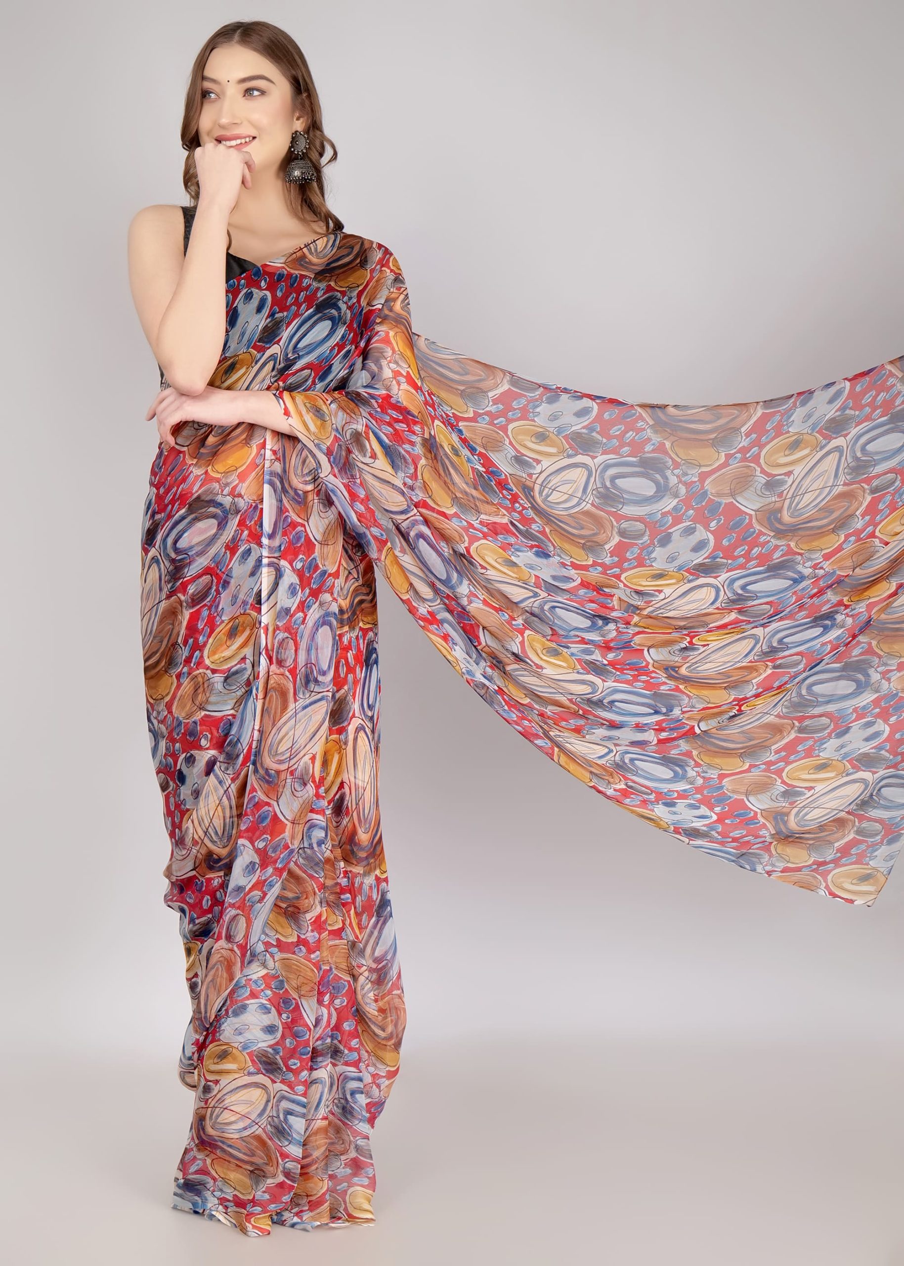 This elegant Abstract Design Georgette Saree features a stylish, eye-catching pattern that enhances your look. Made with premium Georgette fabric, it offers a soft and lightweight feel, making it perfect for any occasion. A great choice for parties and formal gatherings.