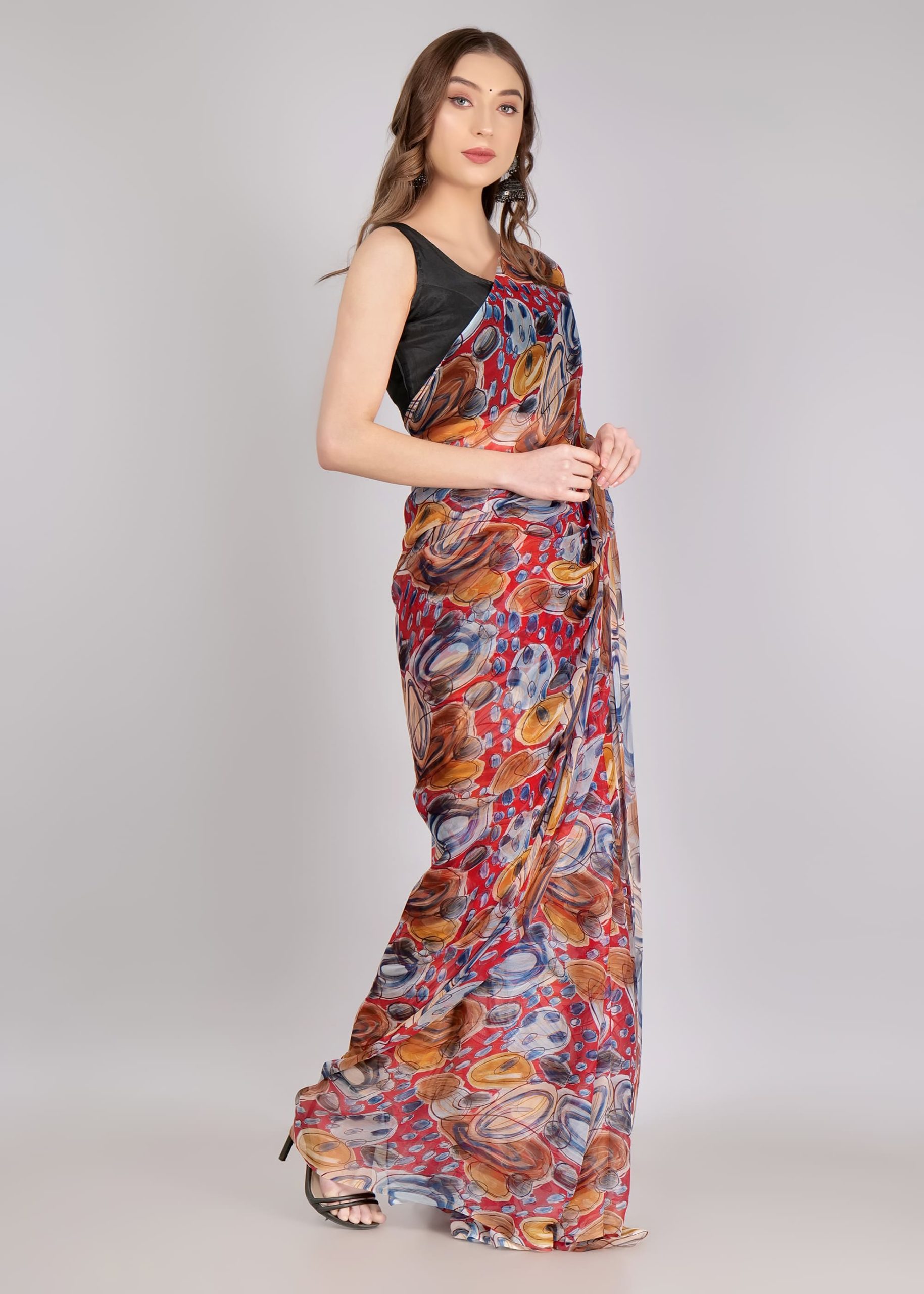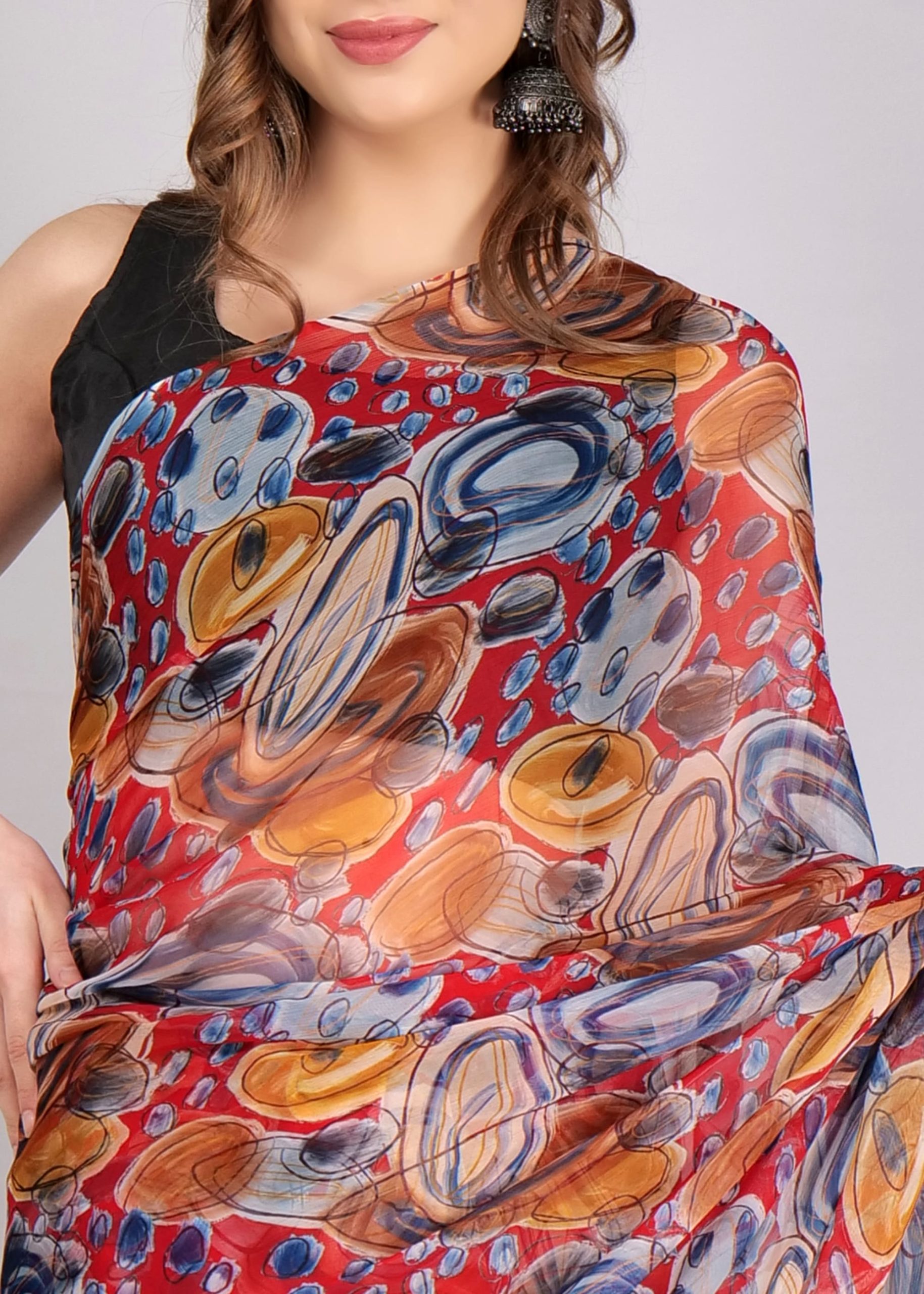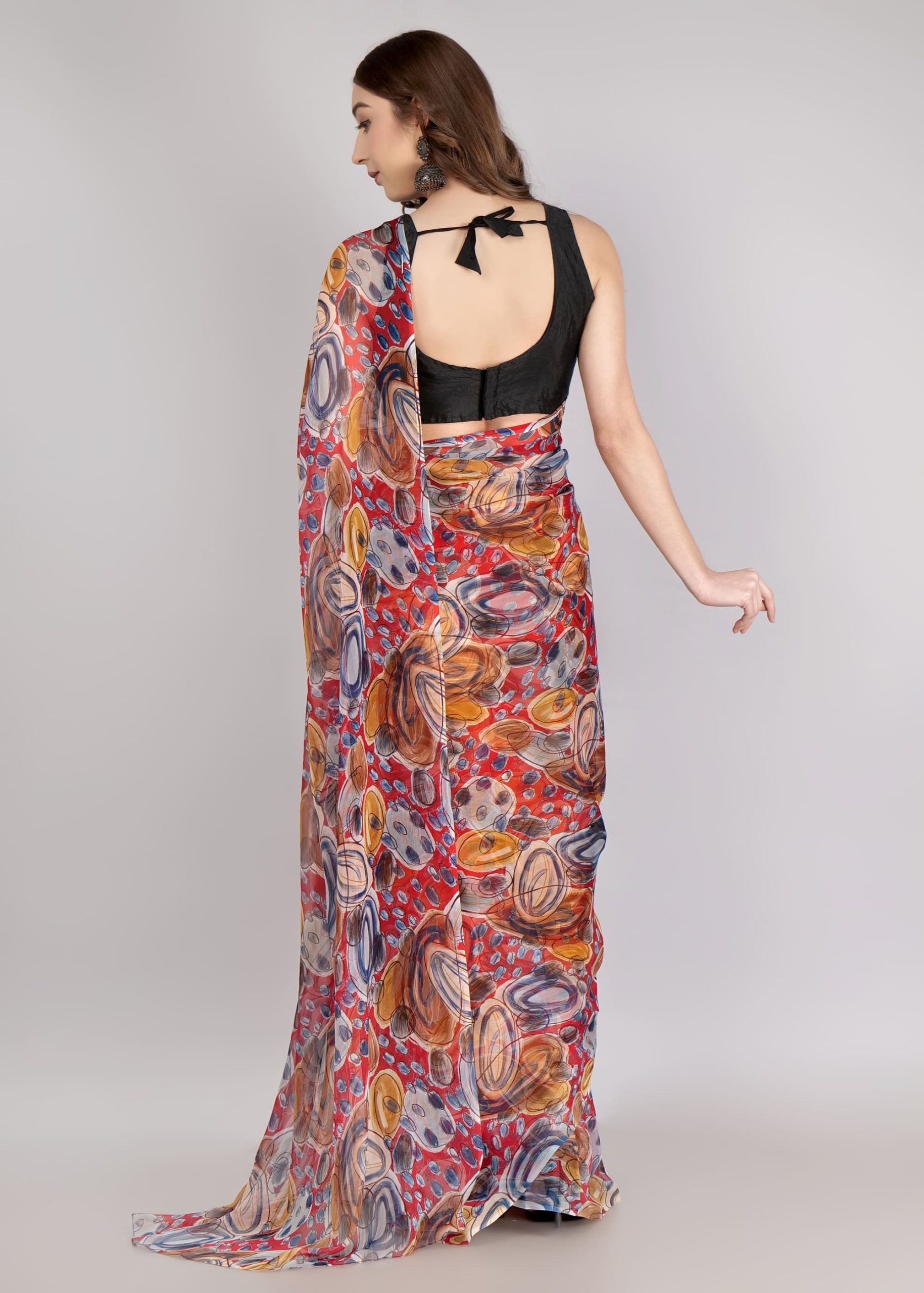 1️⃣ Pick Your Fabric (Chiffon, Georgette, Silk & more!)