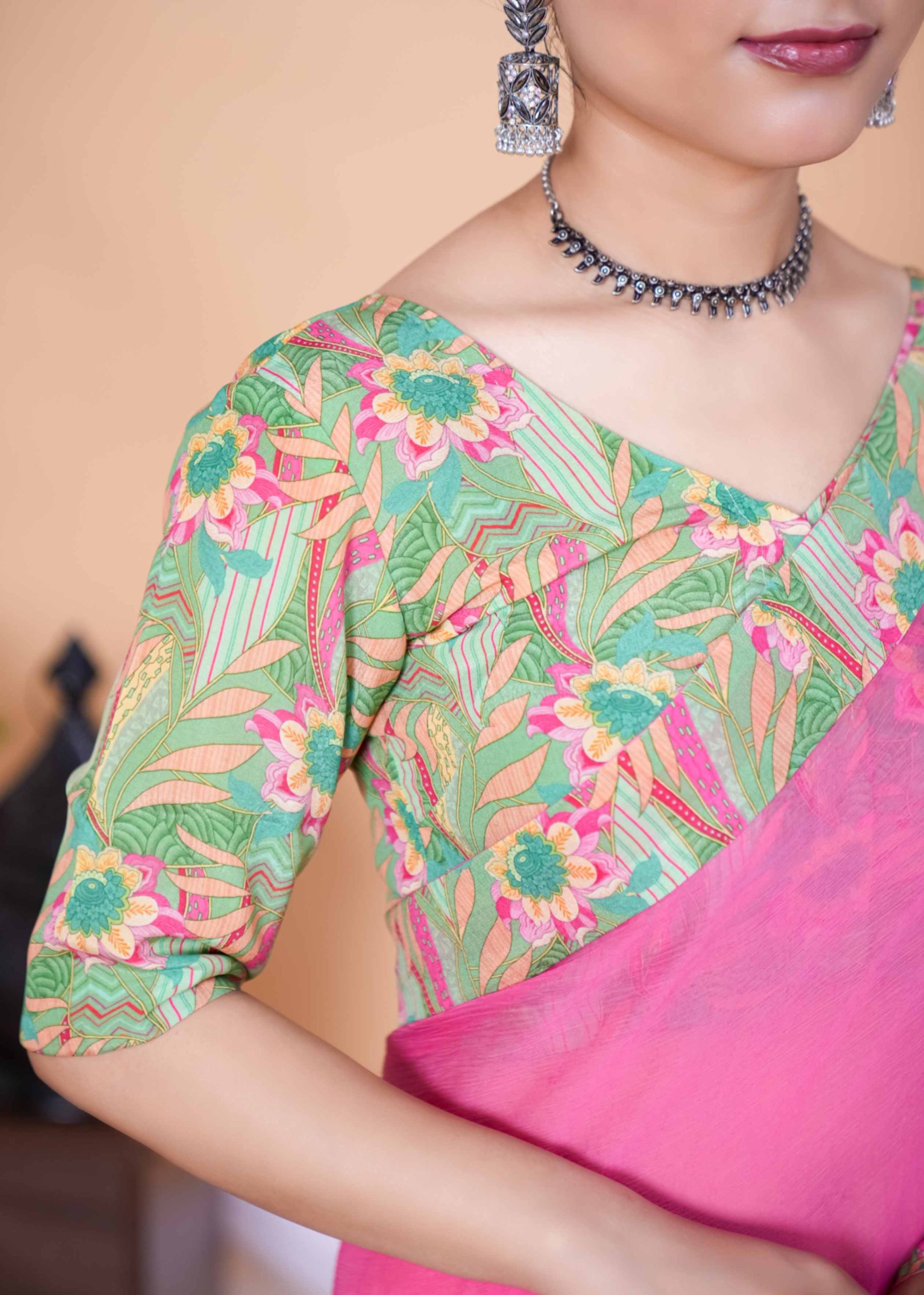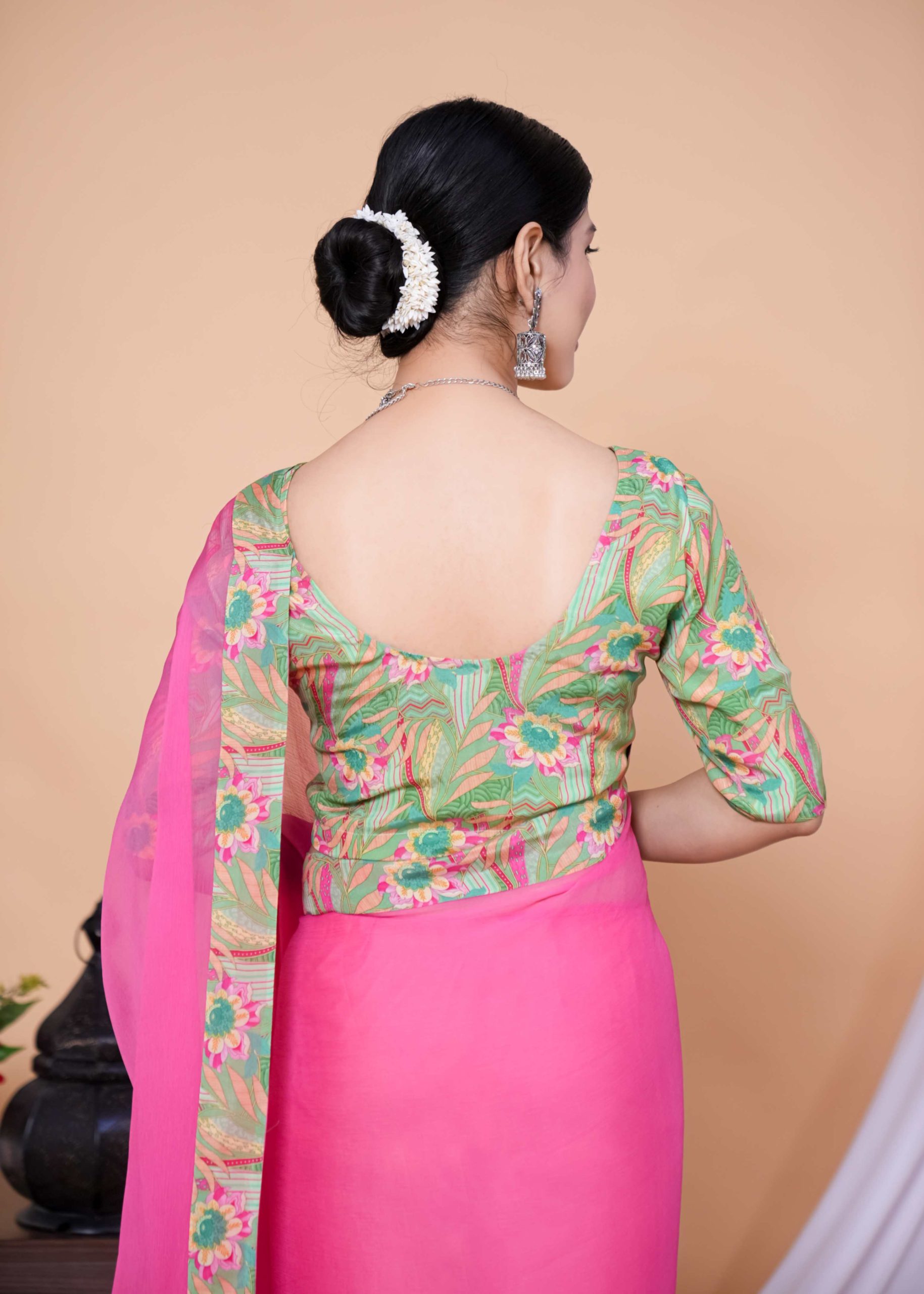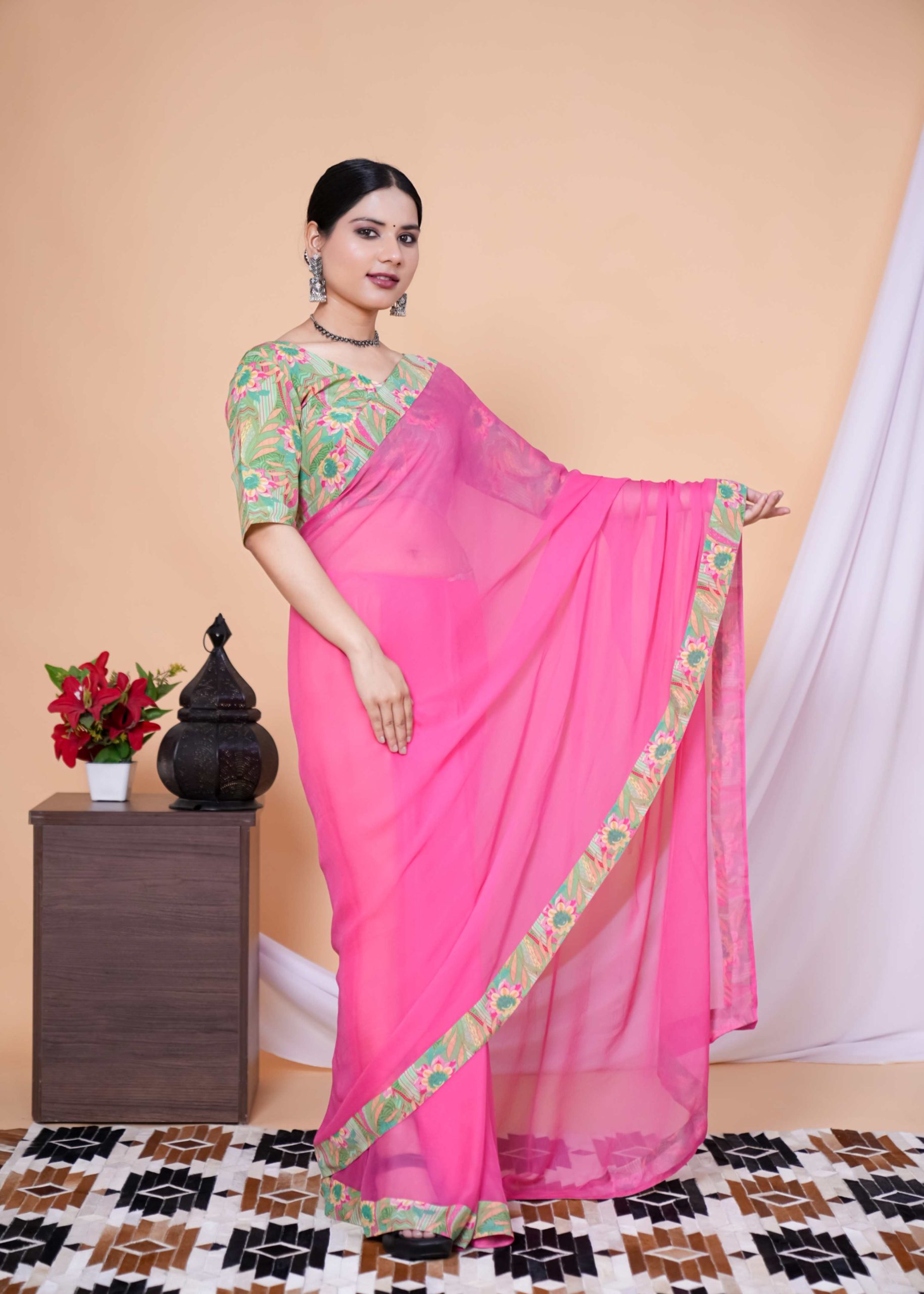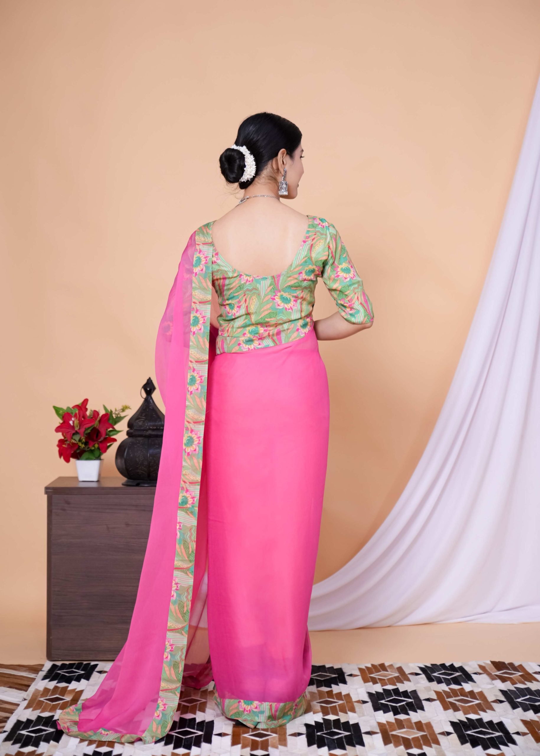 1️⃣ Pick Your Fabric (Chiffon, Georgette, Silk & more!)