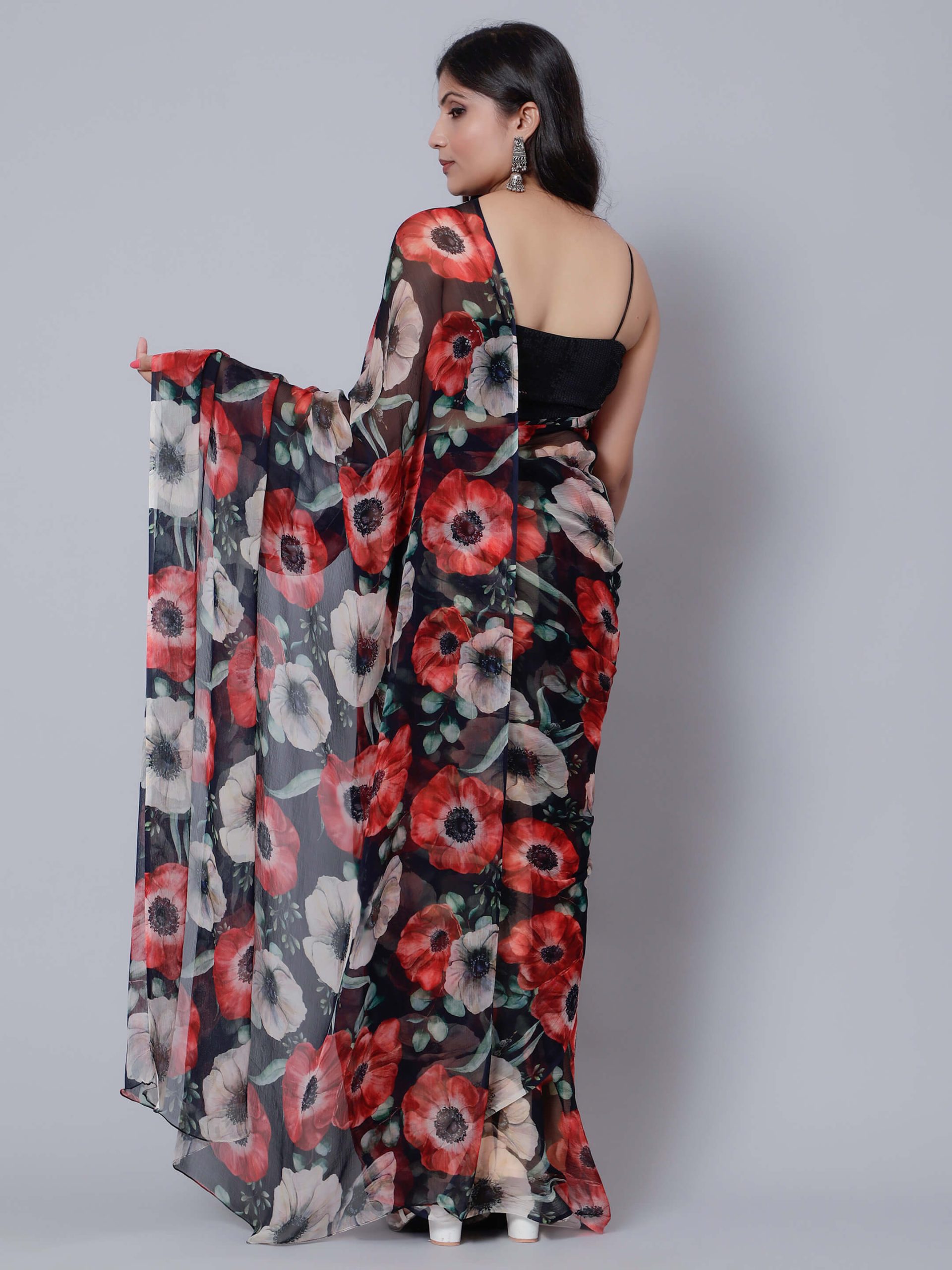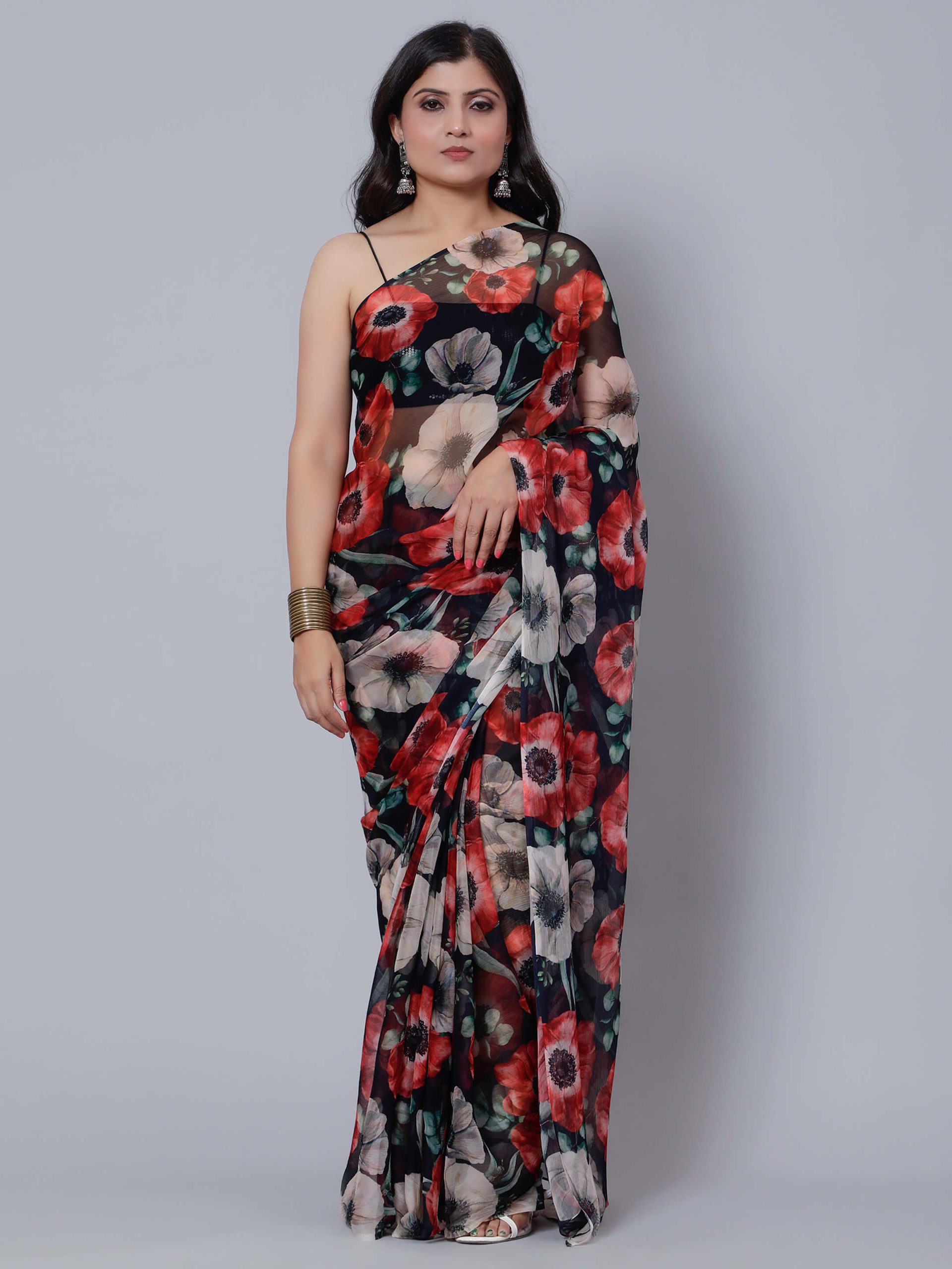 The bestselling Flowers In Full Bloom Chiffon Saree is back — light, graceful, and made for the spotlight. Perfect for brunches, poojas, or casual glam! 🌼