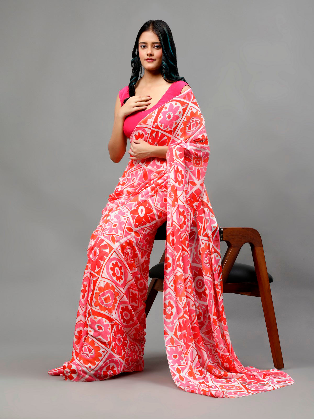 1️⃣ Pick Your Fabric (Chiffon, Georgette, Silk & more!)
