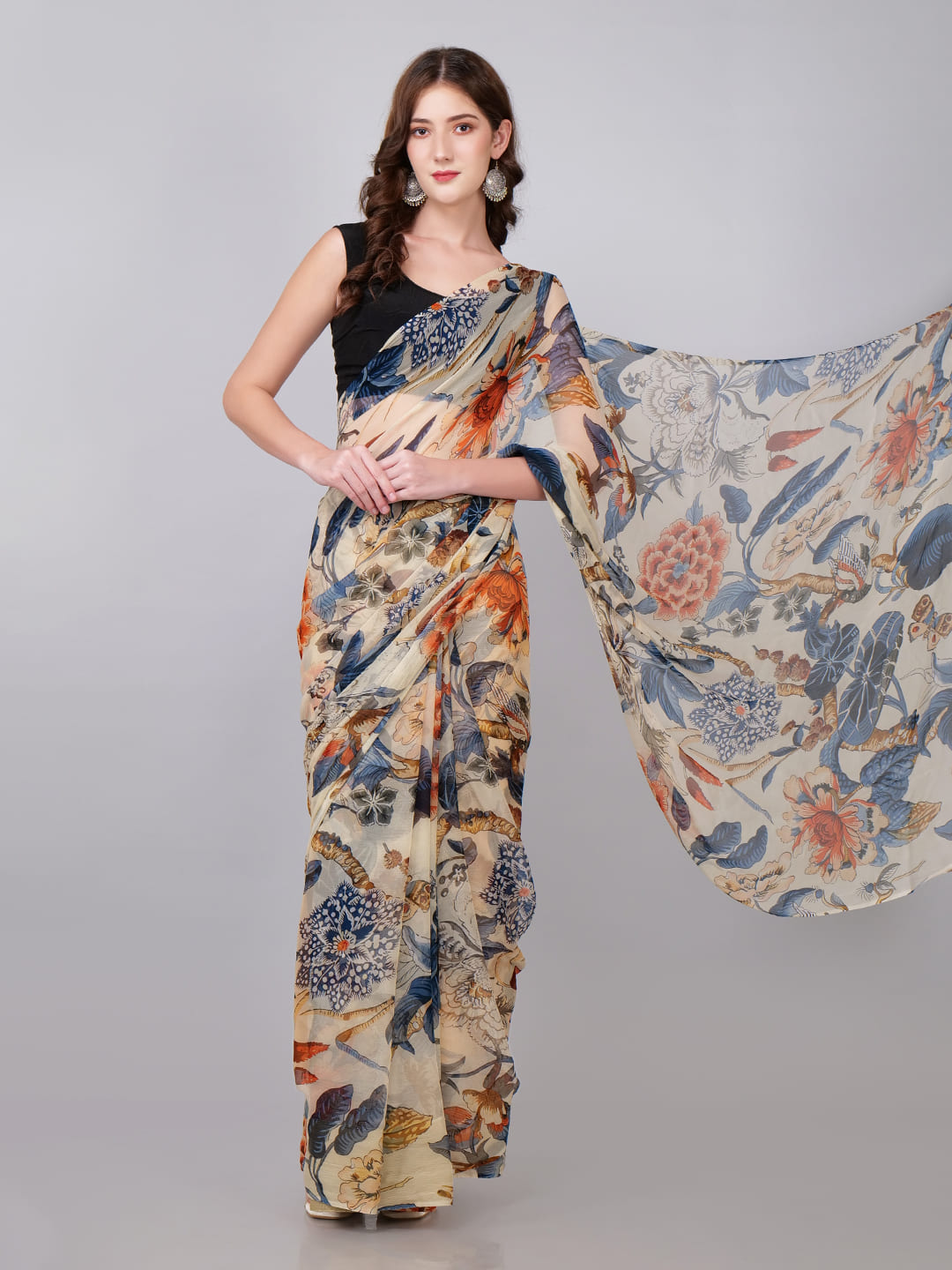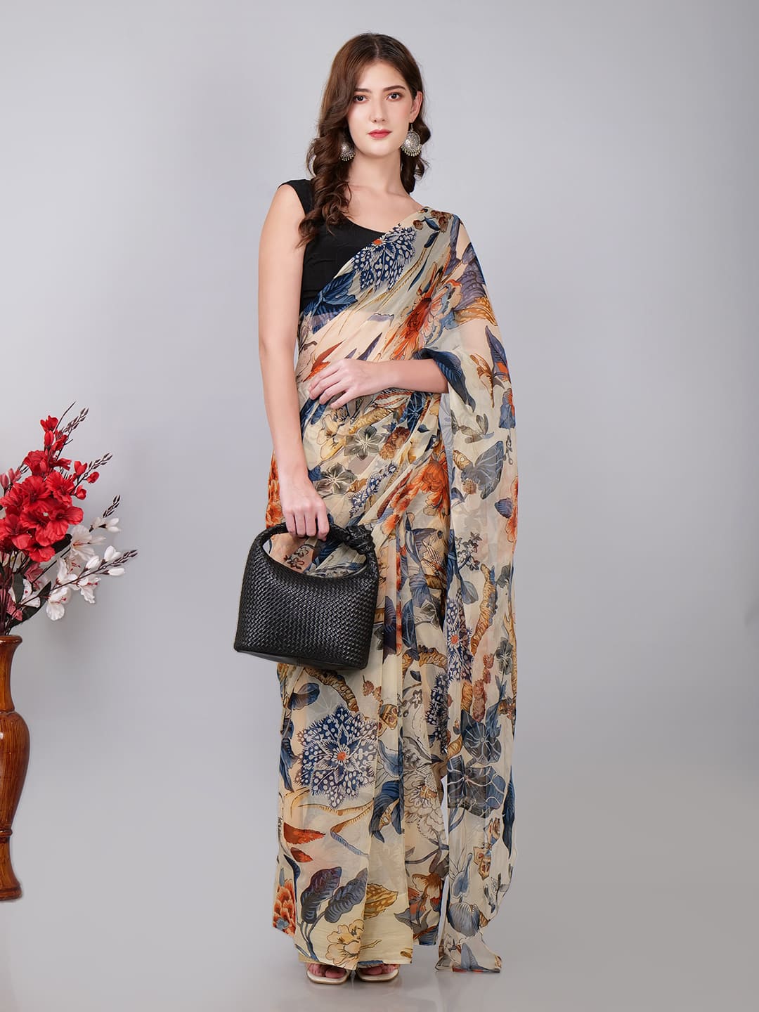 The bestselling Flowers In Full Bloom Chiffon Saree is back — light, graceful, and made for the spotlight. Perfect for brunches, poojas, or casual glam! 🌼