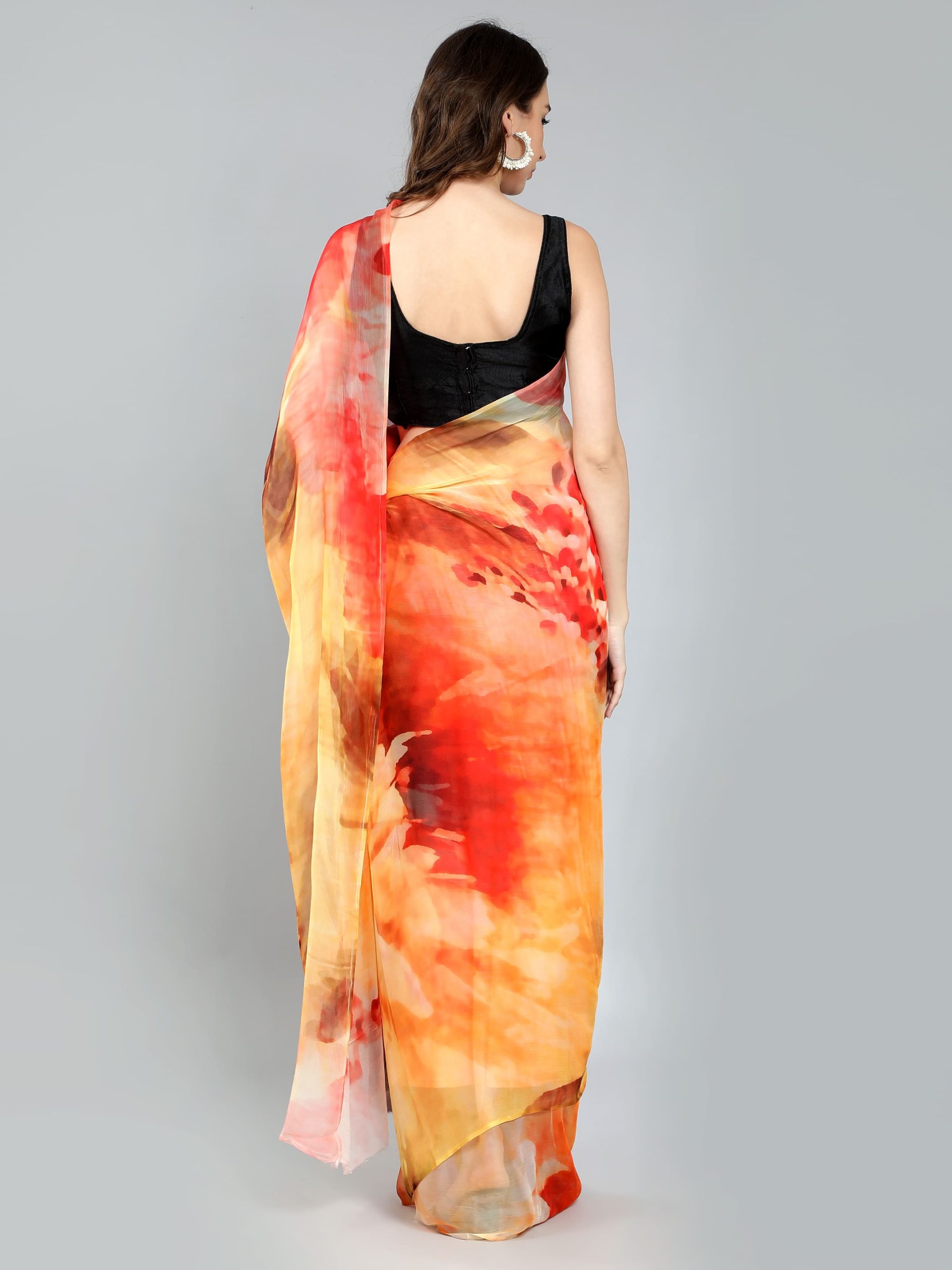 The Orange Chiffon Saree features a bold, vibrant orange hue that radiates energy and elegance. Crafted from soft, lightweight chiffon, it’s comfortable and easy to drape, making it perfect for festive occasions, parties, and casual gatherings. Its refreshing color adds a lively touch to any wardrobe.