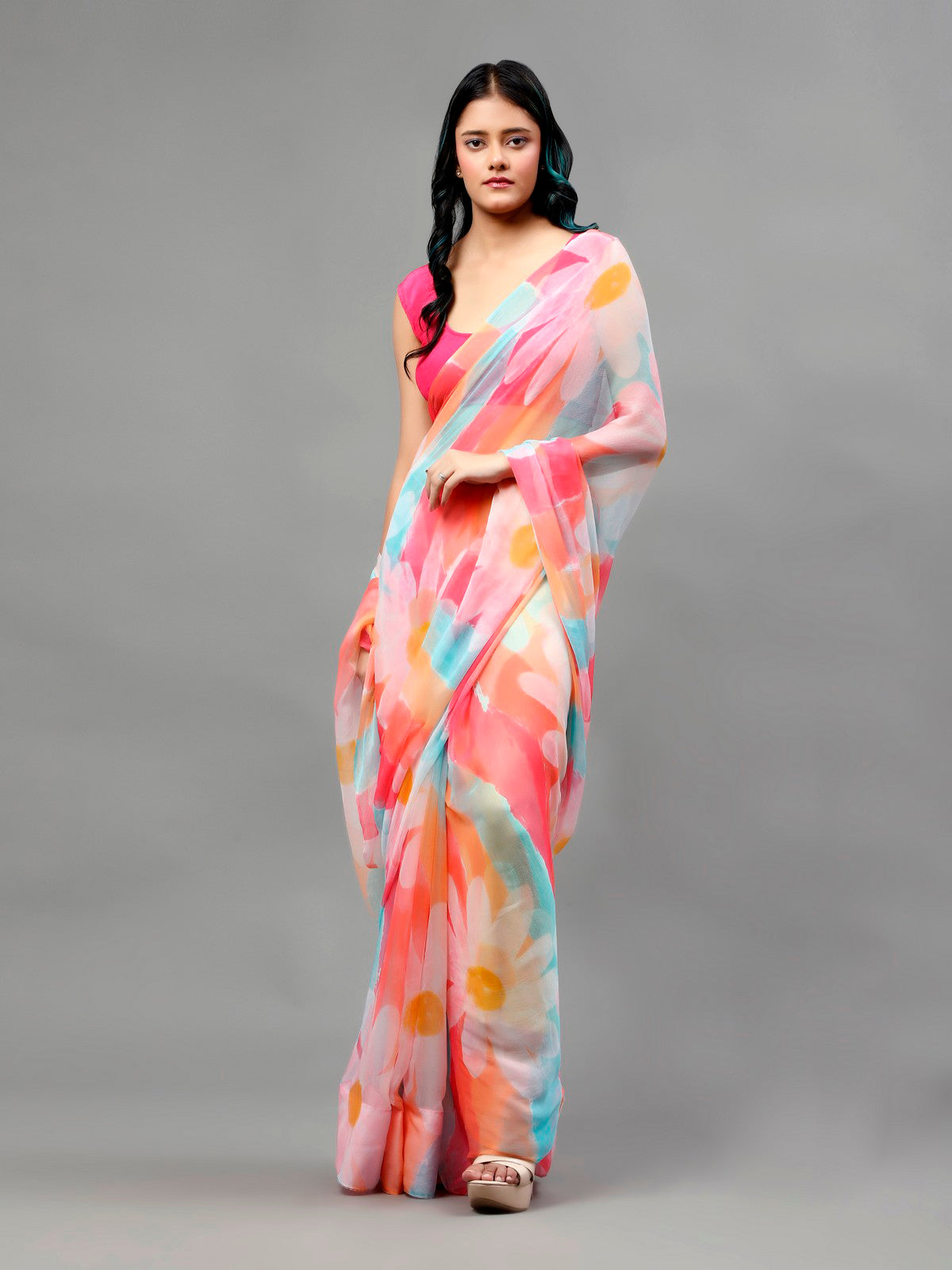 1️⃣ Pick Your Fabric (Chiffon, Georgette, Silk & more!)