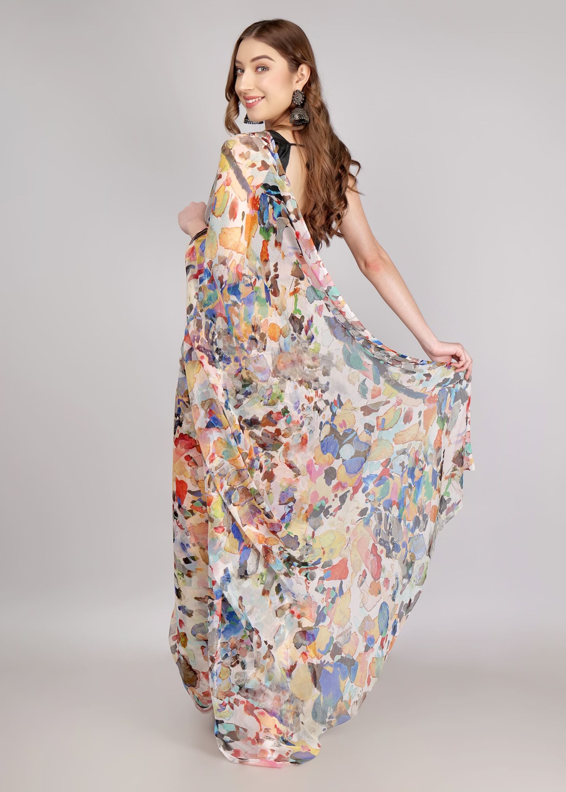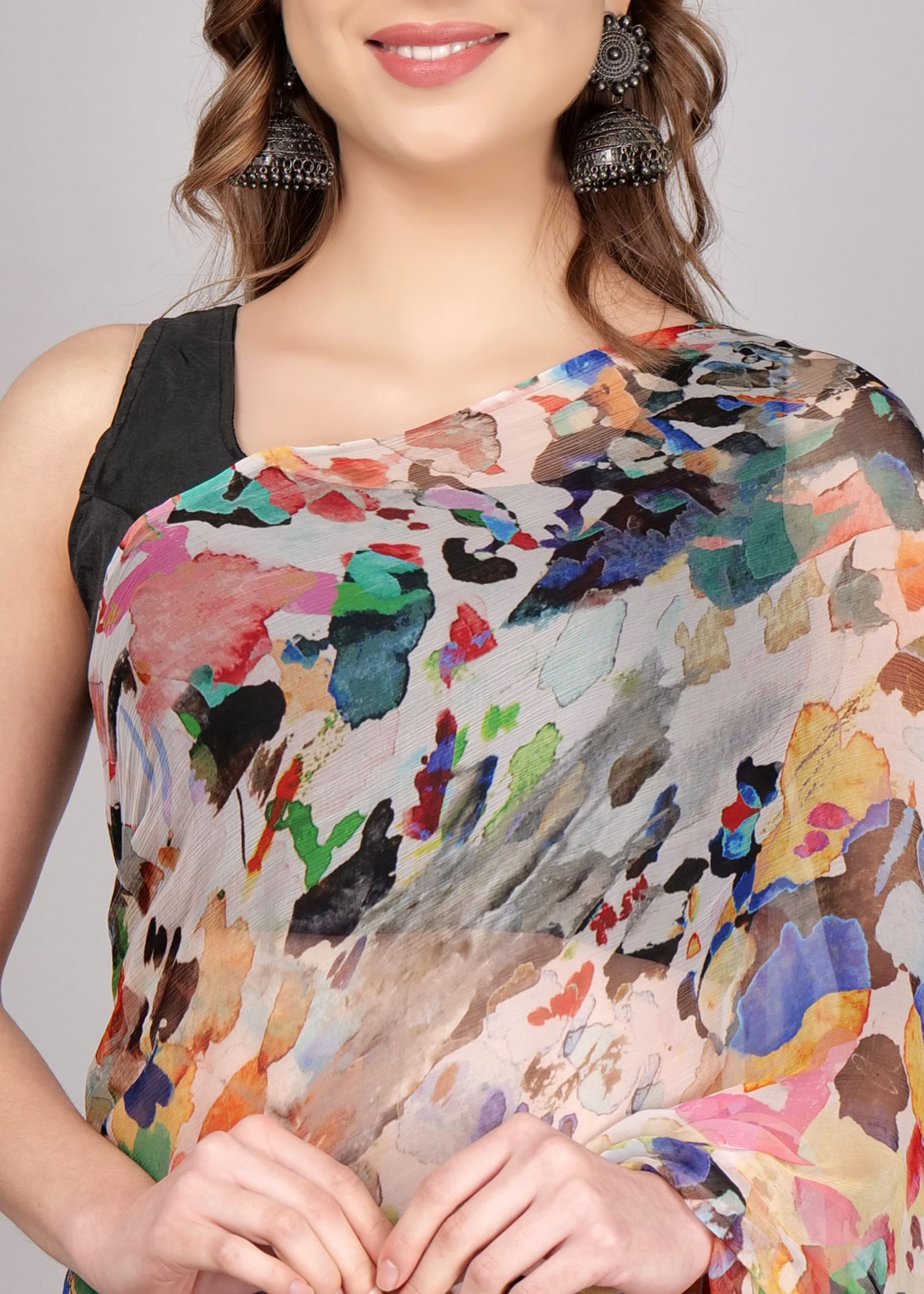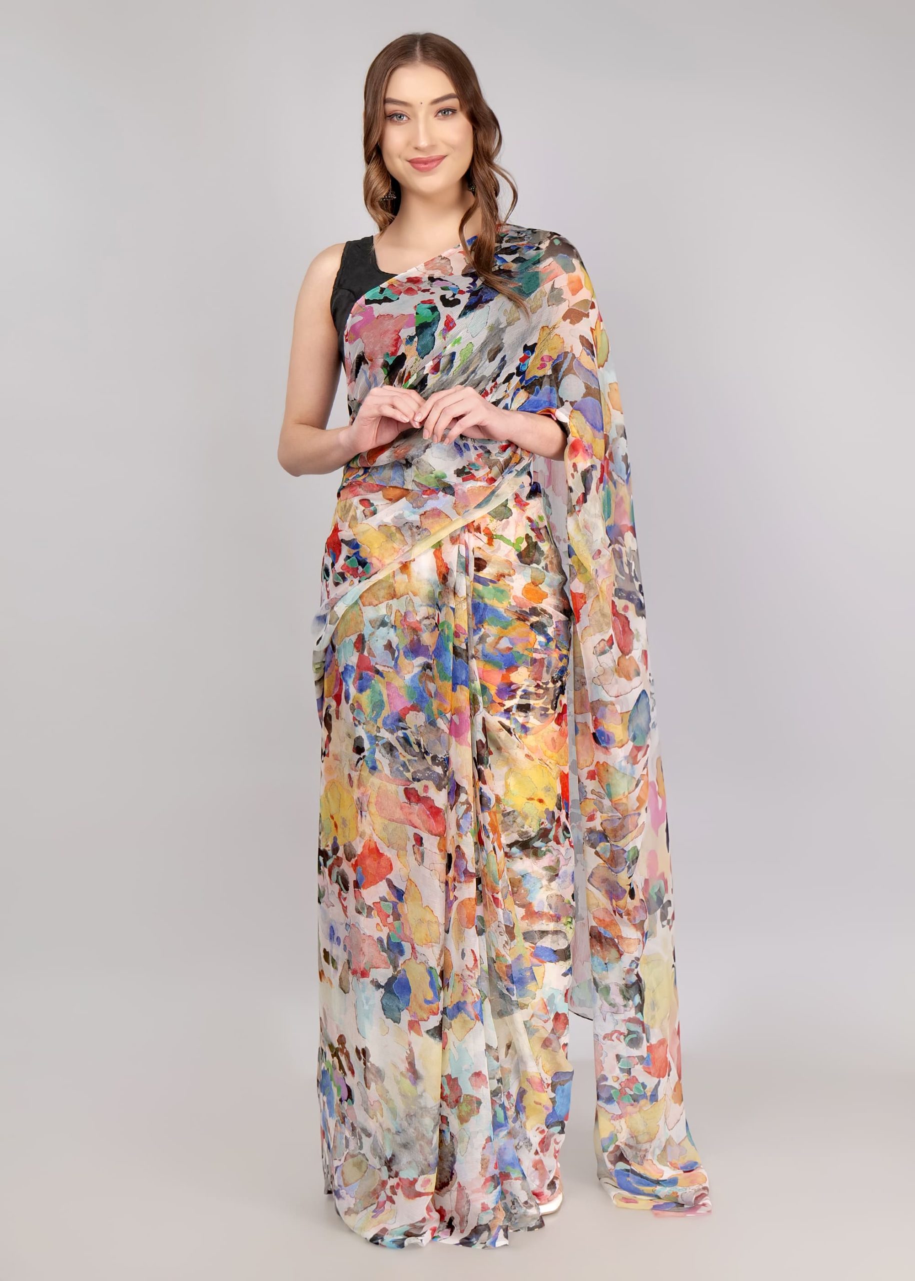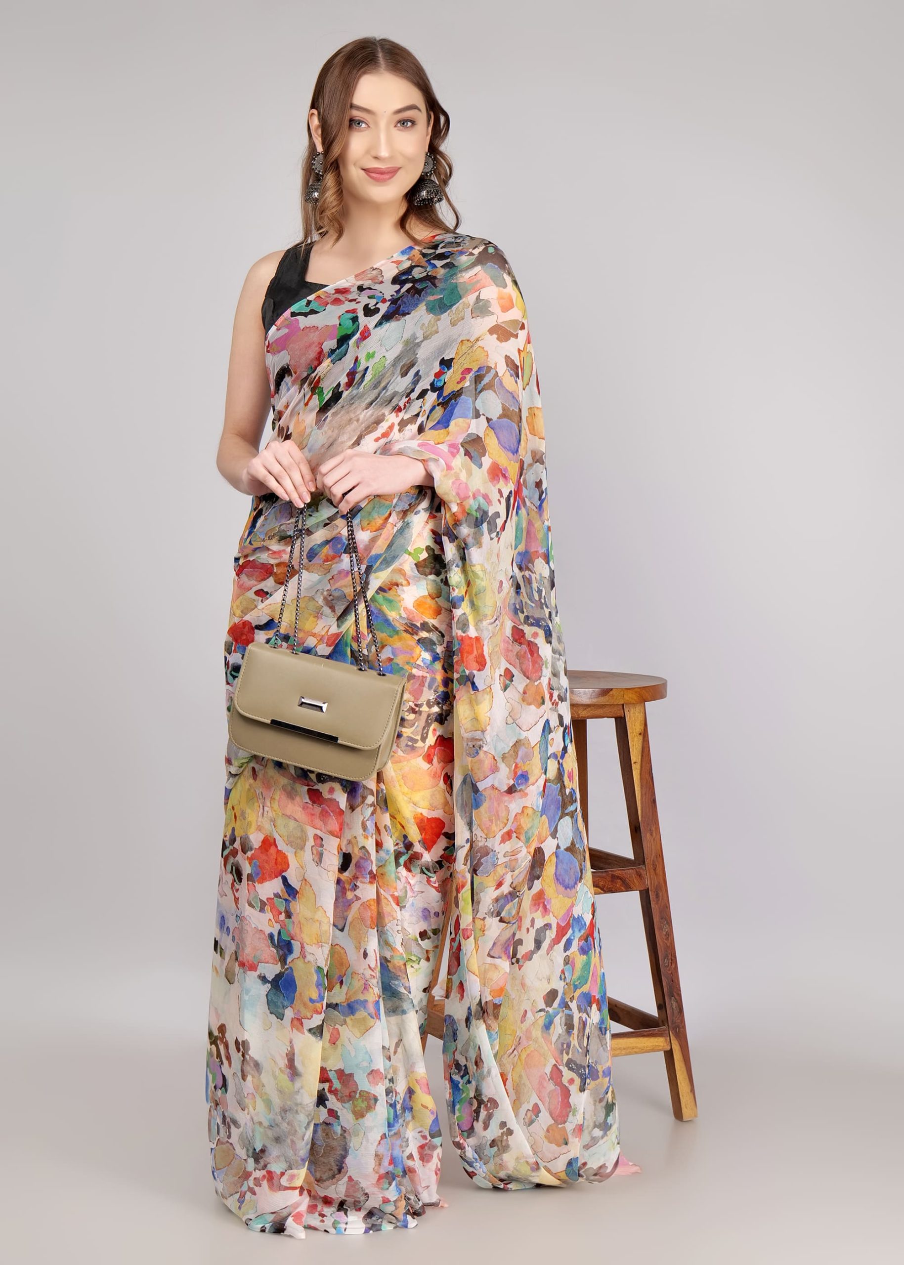 1️⃣ Pick Your Fabric (Chiffon, Georgette, Silk & more!)