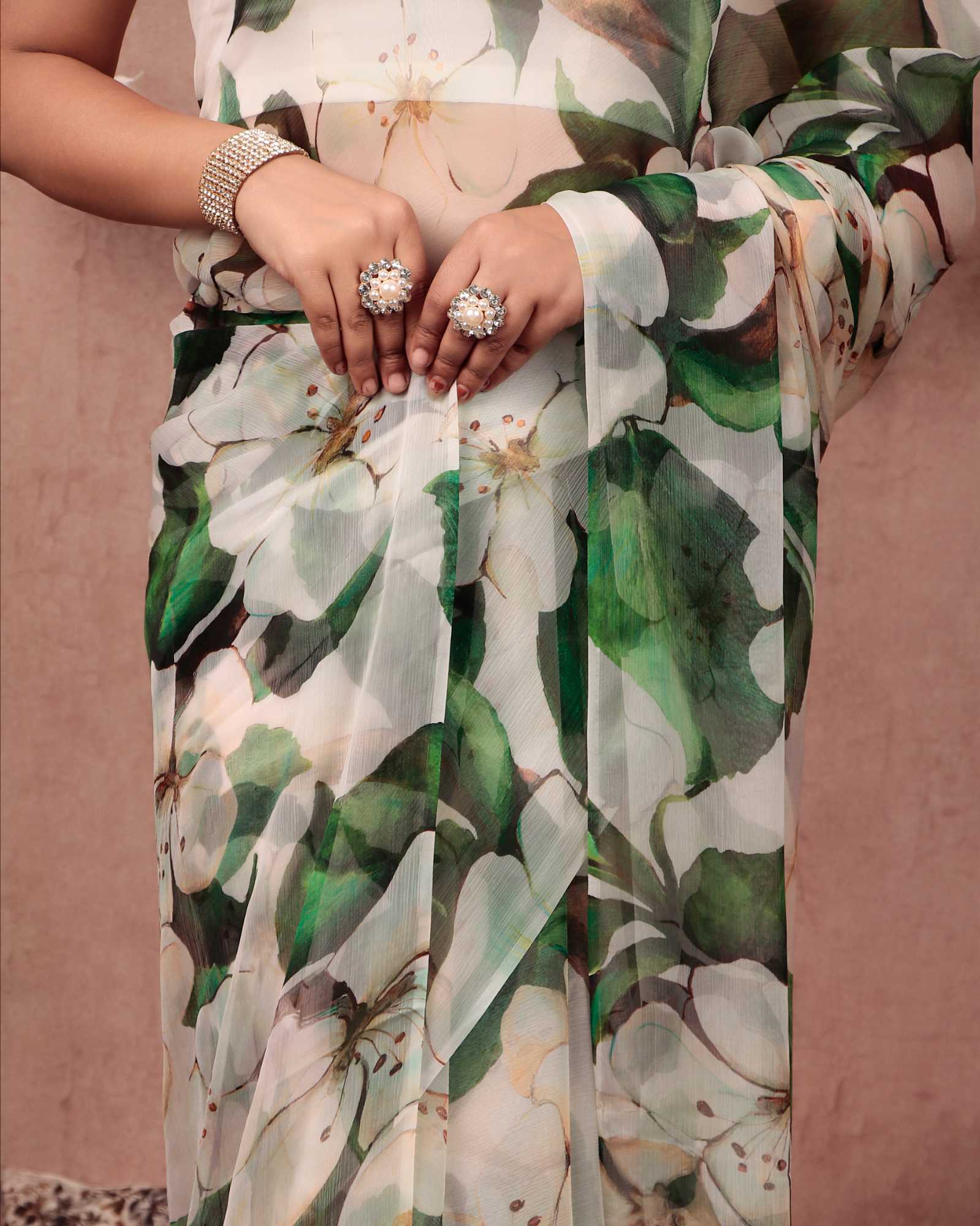 1️⃣ Pick Your Fabric (Chiffon, Georgette, Silk & more!)